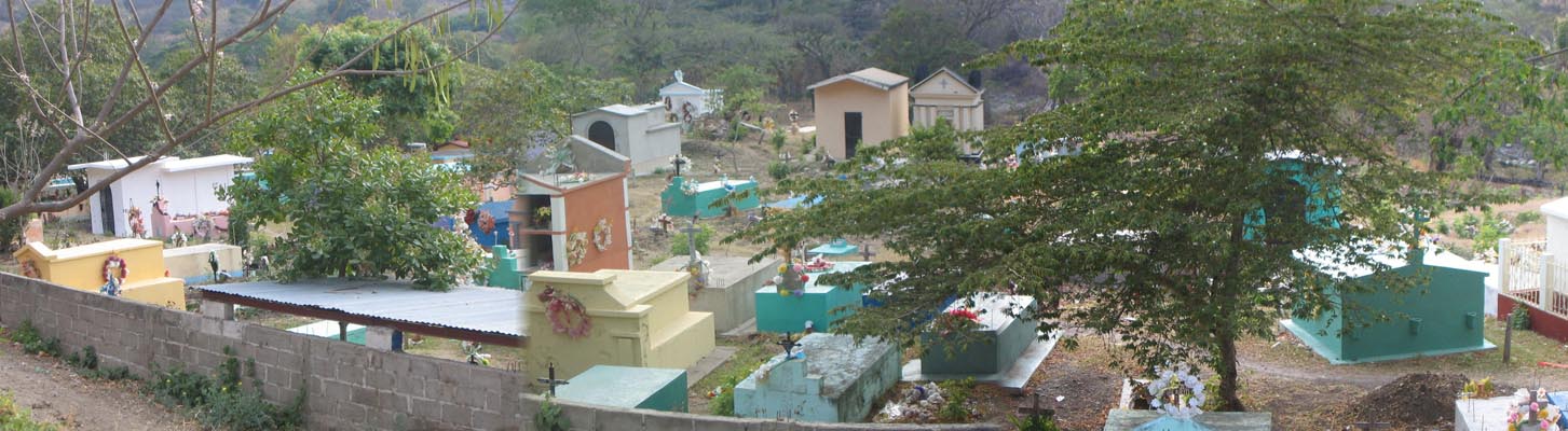 A camposanto, or graveyard, in Chiquimula department, Guatemala. Because it was almost Easter, the place had been spruced up. If you look carefully, you can see beer cans and cigarettes left as tokens at the grave of Jim Morrison.