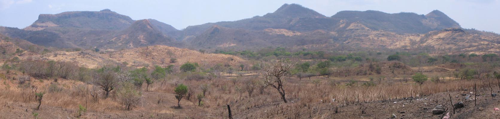 When it's 100 degrees out, and you're bicycling, this sort of landscape seems less than romantic. It looks foreboding, frankly, and the chalk outlines of previous bicyclists don't help. In Honduras.